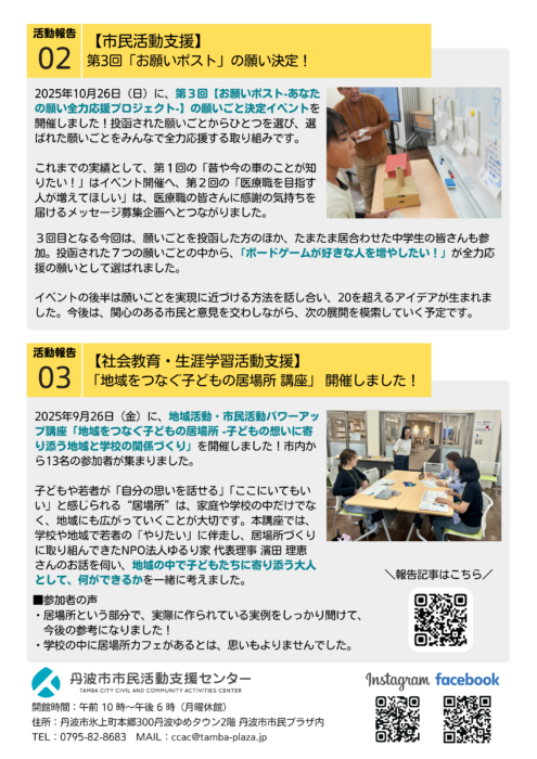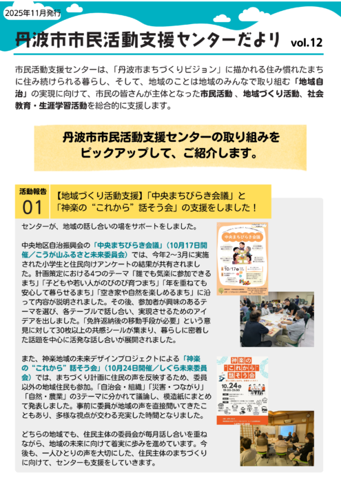 『丹波市市民活動支援センターだよりvol.12(2025年11月号)』を発行しました。