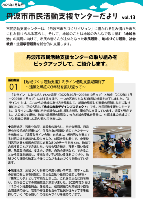 『丹波市市民活動支援センターだよりvol.13(2026年1月号)』を発行しました。