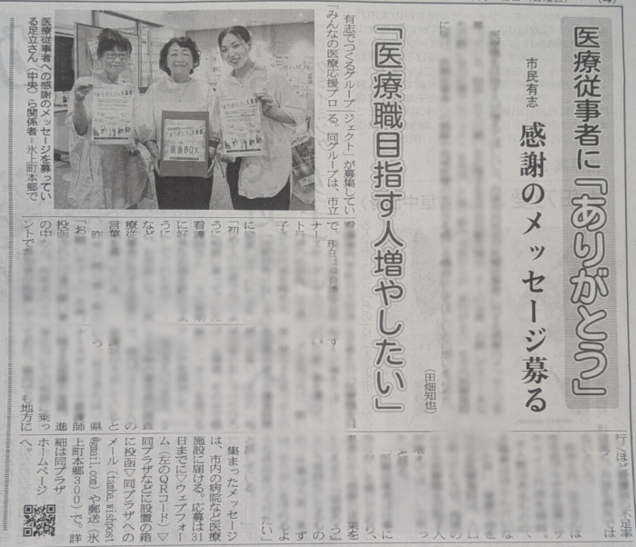 みんなの医療応援プロジェクトの活動が、丹波新聞さんで紹介されました。