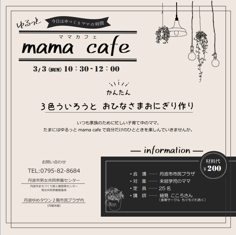 申し込みフォーム→ 「ゆるっとmama cafe」 からお申込みください。
