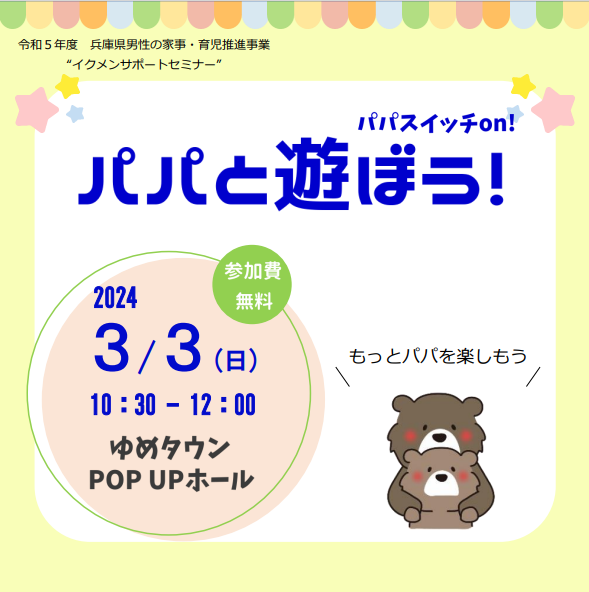 申し込みフォーム→ 「パパと遊ぼう!パパスイッチon!」 からお申込みください。
