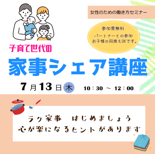 “家事シェア”はお手伝いとは違い、パートナーや子どもにも主体的に家事に取り組んでもらうということです。
