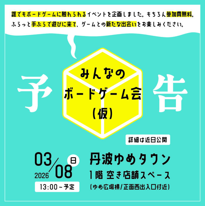 そして『みんなのボードゲーム会(仮)』の開催が決定しました。